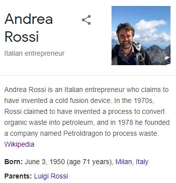 Toto nie je ten Andrea Rossi. Andrea Rossi, o ktorom Google paneli píše, je čiastočne strelený taliansky vynálezca. A keďže vo všeobecnosti platí, že čím bláznivejší je vynálezca, tým má neupravenejšie háro, tak len toto môže byť čiastočne strelený taliansky vynálezca: